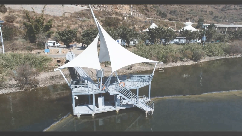 固定在藍(lán)藻聚集點(diǎn)的鋼結(jié)構(gòu)打撈作業(yè)平臺,配置高效可調(diào)式渦井取藻器,智能調(diào)節(jié)、高效汲取富集水面表層5cm的高濃度藍(lán)藻藻漿。
