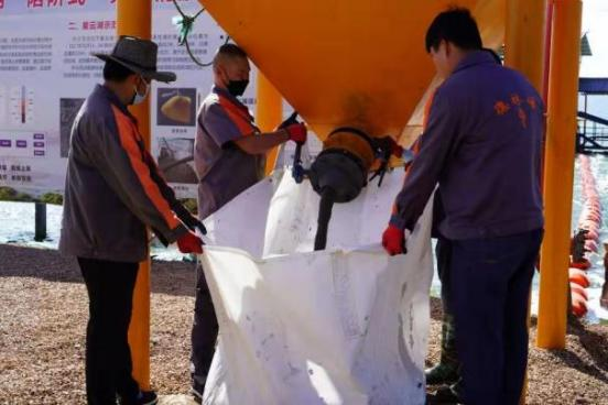 此刻,星云湖邊,柔性清淤裝置也開始了運行工作,運行人員完成例行檢查后,便開始操作推泥、抓泥、取泥、上岸裝車(裝袋)、外運處置等一系列流程,一個流程接著一個流程的操作著,流程是固定的,似乎缺乏新意。但是每個人都認真對待每一次操作,因為他們知道這樣的“固定”為的是不斷優化運行工藝,確保柔性清淤能夠順利常態化運行。